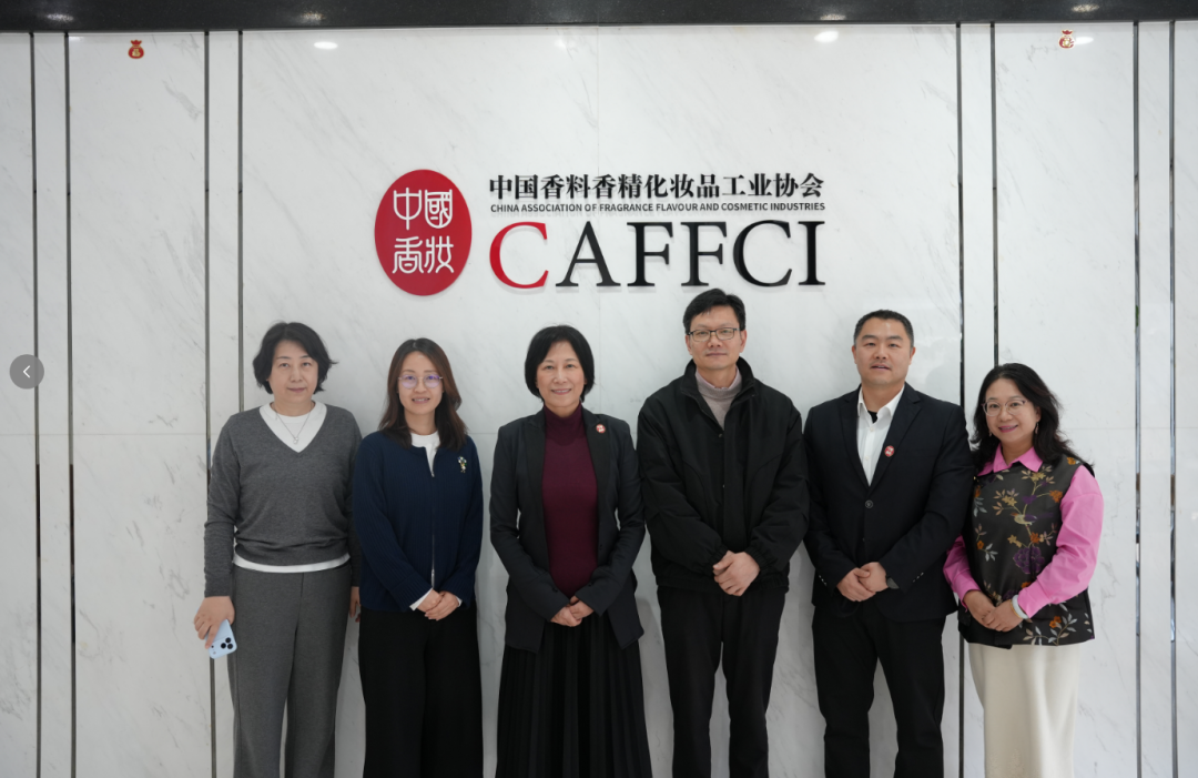 12月11日, 凯爱瑞亚太区法规事务及政府事务副总裁沈家生、大中华区法规事务副总监王杰红和高级法规经理朱蕾一行到访中国香料香精化妆品工业协会(以下简称中国香妆协会)开展座谈交流。中国香妆协会理事长颜江瑛、秘书长穆旻、香料香精部主任刘华出席本次会议。