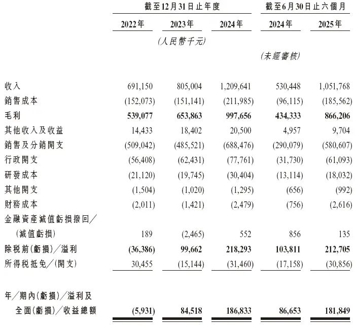 根据招股书披露的财务数据,林清轩在过去几年实现了显著的营收增长与盈利能力提升: